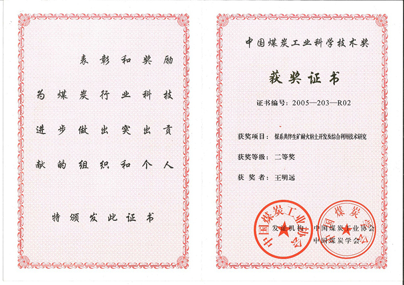 2005年中國煤炭工業(yè)科學技術(shù)二等獎