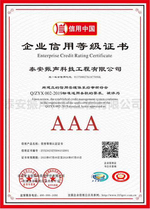信用等級AAA認(rèn)證證書
